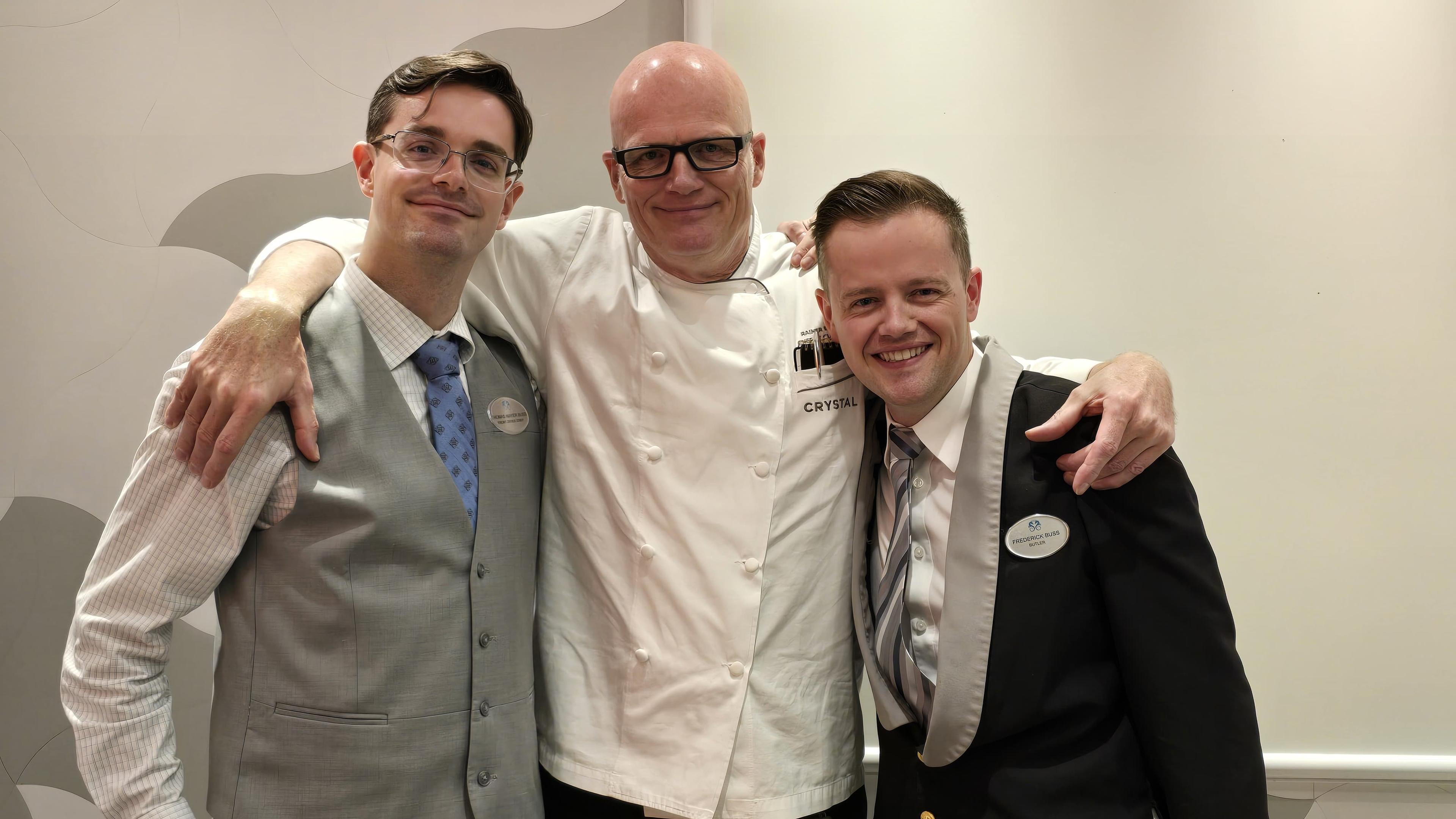 Rainer Buss, Chef de Cuisine at Osteria D’Ovidio, began his career in cruise in 1992 and has worked for Crystal for the past decade. Twenty years on, his sons Frederick, a Butler, and Thomas, who recently joined our Front Desk team, have come aboard, too. So, what’s it like to work with family in such a unique setting?